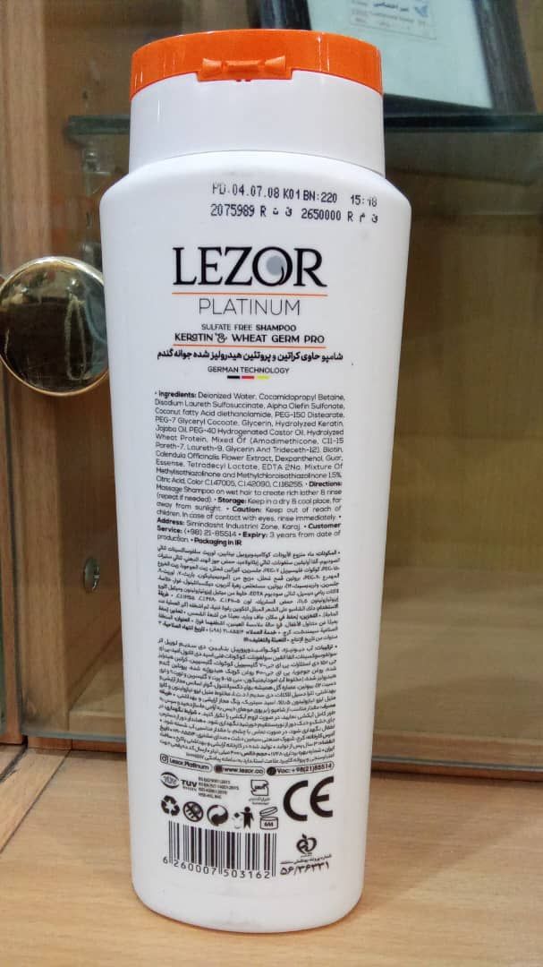 شامپو حاوی کراتین و پروتوئین هیدرولیز شده جوانه گندم لزور Lazor
